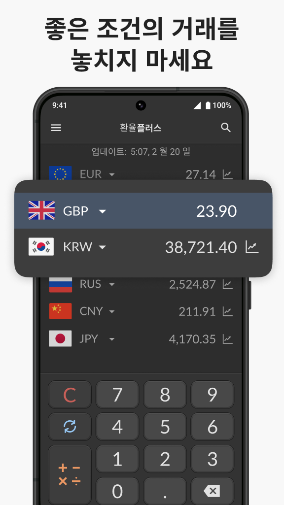 🇰🇷 계산기 플러스 제작자로부터 무료 통화 변환기 플러스가 출시되었습니다! 저희의 통화 변환기는 AccuRate™를 사용한 전 세계 환율에 대한 가장 쉽고 사용하기 쉬운 앱입니다!정확한 ™의 실시간 환율 정보를 사용하여 전 세계 모든 통화를 무료로 변환하고 환율을 계산해 주는 통화 변환기 및 계산기입니다. Calculator Plus의 제작자들이 제작한 Currency Converter Plus Free는 전 세계 모든 통화에 대해 간편하게 사용할 수 있는 통화 변환기로 이를 통해 환전 시 그 금액을 예상할 수 있습니다. 물론, 외국 여행 시, 알고 있으면 좋은 요령이나 할인, 쇼핑 상품 정보 등에 대해 퍼센트로 표시해 주는 계산기가 탑재되어 있습니다. 오늘 시점으로 괜찮은 거래인지 확인하기 위해 상점 가격을 오늘 시점의 자국 통화로 변환해 비교해볼 수 있습니다. 환율 데이터를 사용할 수 없을 때 여행 도중 오프라인으로도 사용할 수 있습니다.