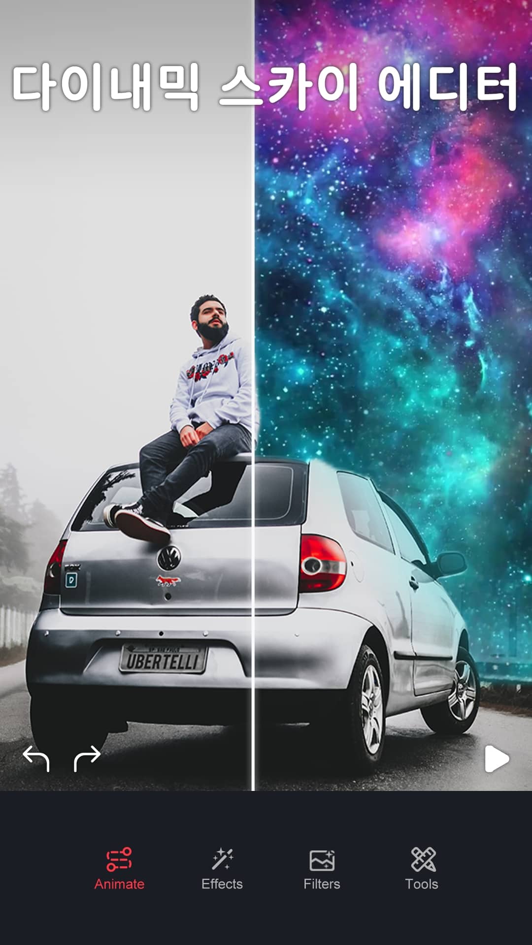 -간단한 탭으로 놀라운 분산 효과를 추가하여 멋진 사전 설정으로 사진을 공상 과학 영화로 바꿔보세요.