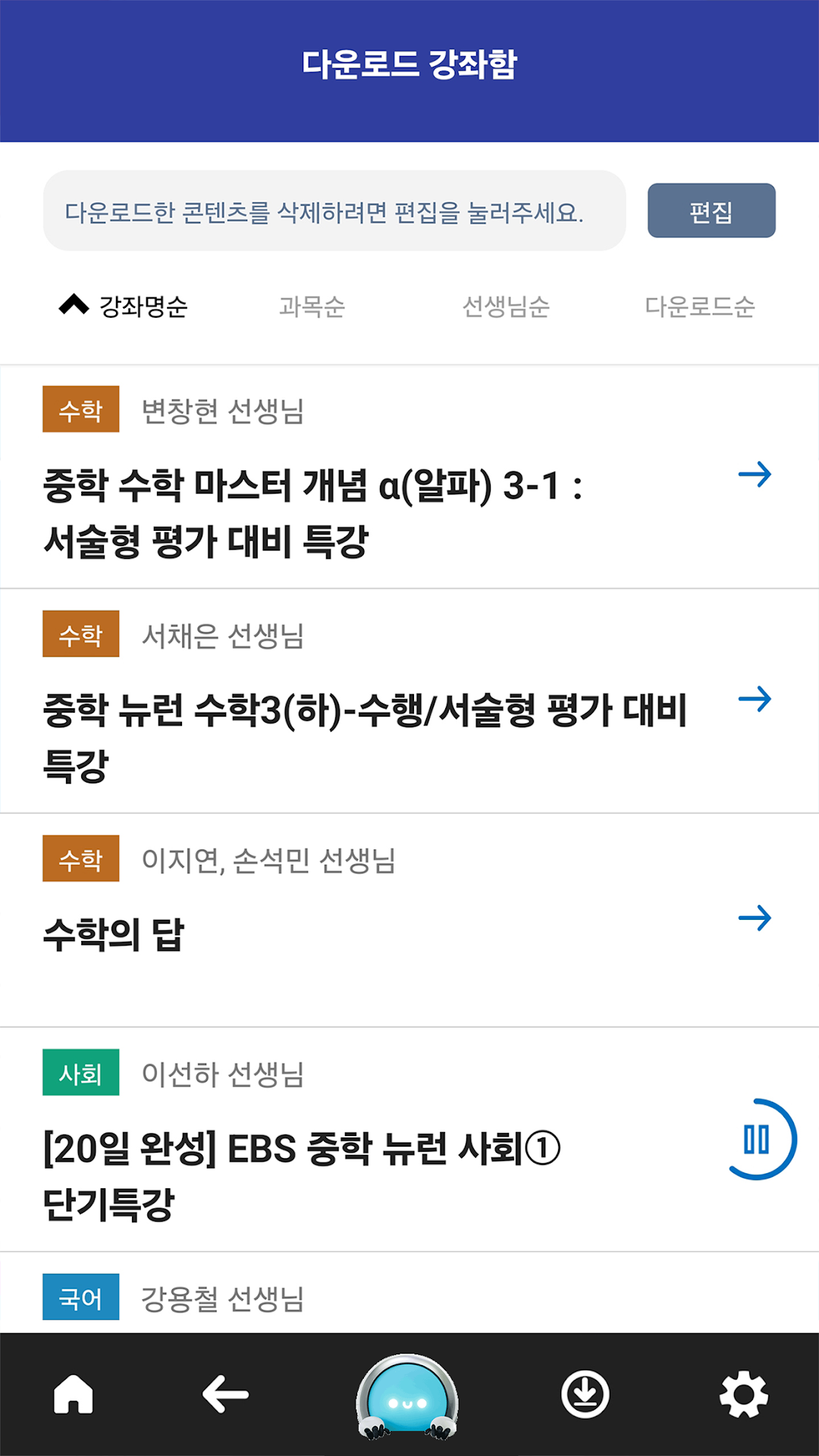 2) EBS 중학 / 중학 프리미엄 강좌 수강 및 학습
